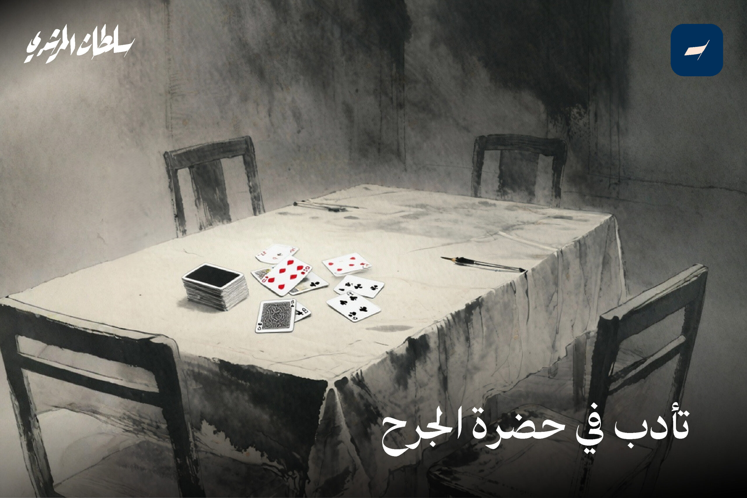 وبعد مدة جمعتني إحدى المناسبات السعيدة بأحد أولئك الذين انشغلوا بلعبة البلوت في يوم عزاء والد صديقنا أحمد فلم أفوت الفرصة وأثناء حديثي معه ذكرت له الموقف وأنه لايزال عالقًا في ذهني، فقام بتبرير فعلته بعذر أقبح من ذنبه، وقال: “رغبنا في الابتعاد عن الحزن فمنذ أن علمنا بوفاته ونحن محزونون فلعلنا احتجنا لتغيير الأجواء الممتلئة بالوجوه المكتئبة” قلت له: “في مآسي الآخرين وانكسارهم إياك أن تبتسم تأدب في حضرة الجرح أو مُت وأنت تحاول”، ففي جراح الآخرين لا نأتي لجرفها بضحكاتنا المُعلنة والتي لسان حالها “لتضيق عليكم الحلقة أكثر وتنزف جراحكم دون توقف” في حين أنهُ قد يتم تقطيبها بمواساة الأحبة، أو تركها لتلتئم بالتأدب.